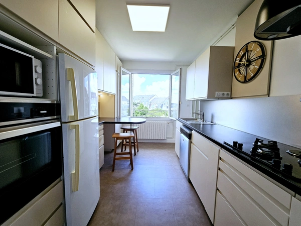 Au sein d'une résidence avec ascenceur idéalement située, cet appartement entièrement refait avec goût comporte une entrée desservant une cuisine aménagée et équipée, une buanderie, un double séjour, une salle d'eau avec WC, deux espaces nuits distincts avec chambre d'un côté et de l'autre chambre et bureau, dégagements avec placards et WC; Vous bénéficierez d'un grand balcon filant exposé SUD, doté d'un store banne et d'une vue extraordinaire. Deux box de stockage complètent l'ensemble. Gros avantage: Chauffage individuel au Gaz. Vous ferez tout à pied et pourrez vous rendre à la gare en 5mn. Une cour intérieure vous permettra un stationnement aisé. Bien proposé par Votre conseillère Anne-Marie BREMAUD 06 58 54 41 03 abremaud@noovimo.fr. Honoraires 3.75% de 240 000EUR (prix de vente honoraires exclus) Soit 249 000EUR honoraires inclus. Honoraires à la charge de l'acquéreur. Nos honoraires sont consultables sur : www.noovimo.fr Quote part charges annuelles de copropriété 1400EUR. Nombre de lots vendus: 3 Pas de procédure en cours. Estimation des coûts annuels: entre 1 140 EUR et 1 580 EUR par an, prix moyens des énergies indexés au 1er janvier 2021 'Les informations sur les risques auxquels ce bien est exposé sont disponibles sur le site Géorisques : http://www.georisques.gouv.fr'. Ref : ABD Votre agent commercial Noovimo inscrit au RSAC de ANGERS sous le no521 308 270 1 - Annonce rédigée et publiée par un Agent Mandataire -