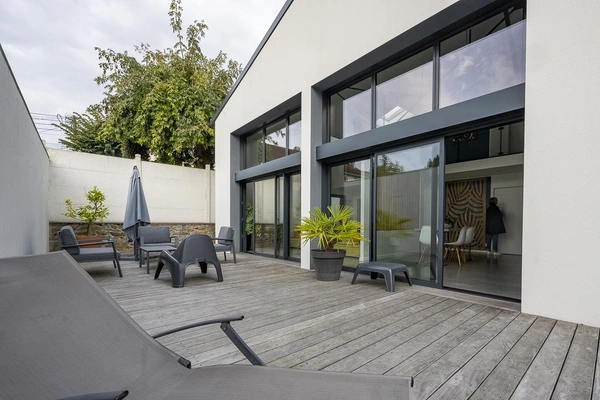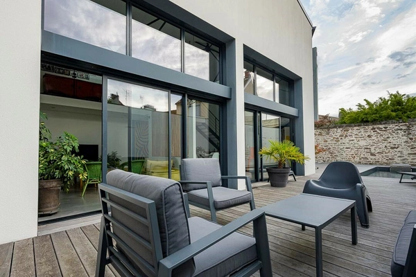 Vous allez craquer pour ce LOFT particulièrement bien agencé et stratégiquement bien situé. Le Rez de chaussée est partagé par un espace de 65m2 incluant cuisine haut de gamme, salle à manger, salon, deux chambres dont une suite parentale, buanderie, WC. La mezannine de l'étage distribue 2 chambres avec salle d'eau traversante et WC.. Belle terrasse bois avec piscine équipée du dispositif de nage à contre courant. Garage de 25m2 avec grenier de stockage. Une réalisation UNIQUE qui procure confort, calme et luminosité à proximité de toutes les commodités. EXCLUSIVITE proposée par Votre conseillère Anne-Marie BREMAUD 06 58 54 41 03 abremaud@noovimo.fr.Honoraires 3,8% de 400 000EUR(prix de vente honoraires exclus)Soit 415 200EUR honoraires inclus. Honoraires à la charge de l'acquéreur. Nos honoraires sont consultables sur : www.noovimo.fr Ref : ABD Votre agent commercial Noovimo inscrit au RSAC de ANGERS sous le no521 308 270 1 - Annonce rédigée et publiée par un Agent Mandataire -