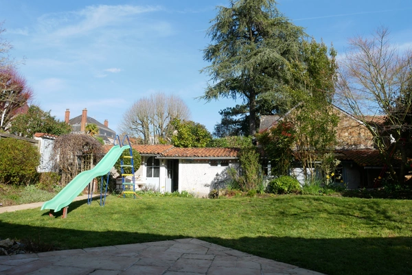 VENDU! HAVRE DE PAIX en plein CENTRE VILLE, à deux pas des Arcades Rougé et des écoles! Cette MAISON FAMILIALE pleine de charme propose de plain-pied un bureau, une chambre et salle d'eau, un salon d'hiver, une double réception de 44m2, une suite parentale de 23m2, une cuisine séparée, une buanderie. L'étage est partagé par une belle mezzanine, deux grandes chambres mansardées de plus de 25m2 au sol, salle d'eau et WC; Le tout pour une surface utile de 215m2. Joli jardin clos avec terrasse, dépendances en pierres, puits alimentant le jardin. Garage à vélos. Deux places de stationnement. CHARME, CALME, LUMINOSITE. Nombreux travaux de rénovation de moins de 10 ans pour un confort optimal! EXCLUSIVITE proposée par Votre conseillère Anne-Marie BREMAUD 06 58 54 41 03 abremaud@noovimo.fr : Honoraires 3,5% de 475 000EUR(prix de vente honoraires exclus) Soit 491 625EUR honoraires inclus. Honoraires à la charge de l'acquéreur. Nos honoraires sont consultables sur : www.noovimo.fr
