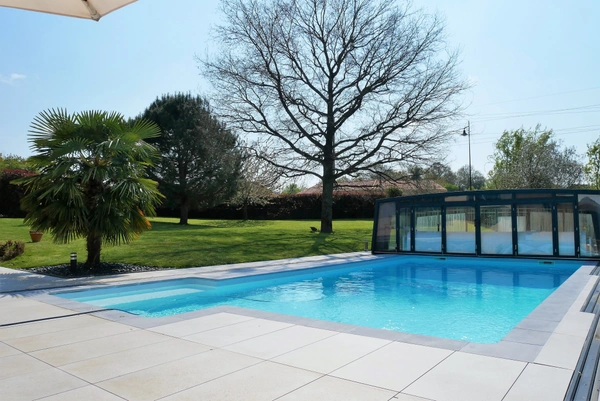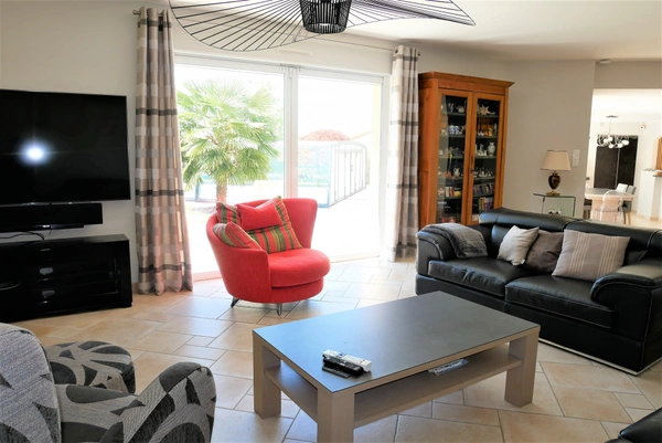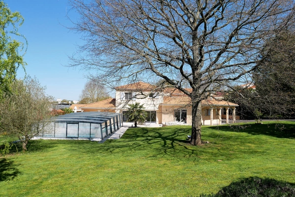 Dans un quartier résidentiel plaisible, venez découvrir cette SUPERBE CONTEMPORAINE qui, au travers de ses huit pièces très soignées vous offre de beaux volumes, de beaux matériaux et une luminosité optimum. L'entrée s'ouvre sur un grand salon avec poêle à bois, une salle à manger attenante à une cuisine haut de gamme, buanderie, chambre avec salle d'eau, bureau, WC. Pièce annexe climatisée équipée ou pas selon les envies. A l'étage: 3 chambres, salle de bains, dressing, WC. Pièce d'eau supplémentaire possible... Vous bénéficierez d'un double garage et d'un carport.. Le tout sur jardin clôturé avec terrasse de 105m2, piscine chauffée ,couverte avec nage à contre-courant. Honoraires : 3%TTC de 600 000 EUR ( prix de vente honoraires exclus): Soit 618 000 EUR honoraires inclus. Honoraires à la charge de l'acquéreur. Nos honoraires sont consultables sur : www.noovimo.fr. Bien proposé par Votre agent commercial NOOVIMO Anne-Marie BREMAUD 06 58 54 41 03 abremaud@noovimo.fr inscrit au RSAC de Angers sous le numéro 521 308 270 1 - Annonce rédigée et publiée par un Agent Mandataire -
