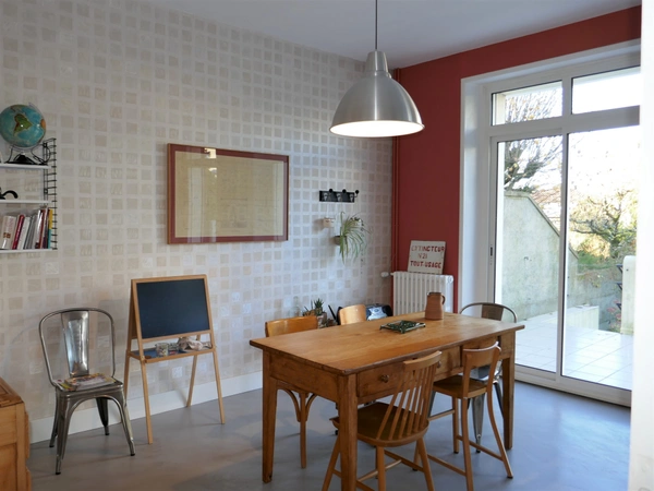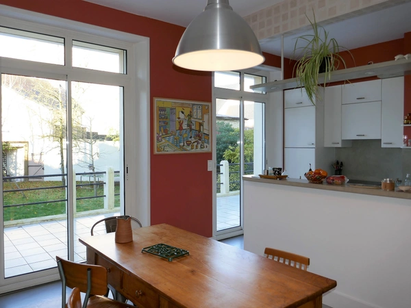 Dans le quartier en vogue du SACRE COEUR, je vous propose cette grande maison familiale cossue, particulièrement bien située et agréablement agencée. Le ton est donné dès l'entrée; celle-ci s'ouvre sur un double séjour sur parquet, une cuisine A/E, un bureau ou chambre avec grand placards, WC.. L'étage sur parquet chêne massif offre un beau palier desservant une suite parentale avec salle d'eau et placards-dressing, 4 autres chambres avec placards et 2 salles d'eau, WC; garage en sous sol total. Le tout est édifié sur parcelle bien orientée avec grande terrasse et jardin arboré bien clos. Points récemment soignés: Isolation, mode de chauffage, électricité. PLEIN DE CHARME et RARE sur le secteur. Bien proposé EN EXCLUSIVITE par Votre conseiller NOOVIMO Anne-Marie BREMAUD 06 58 54 41 03 abremaud@noovimo.fr Honoraires : 3.8% TTC de 400 000EUR ( prix de vente honoraires exclus): Soit 415 200EUR honoraires inclus. Honoraires à la charge de l'acquéreur. Nos honoraires sont consultables sur : www.noovimo.fr. 1 - Annonce rédigée et publiée par un Agent Mandataire -