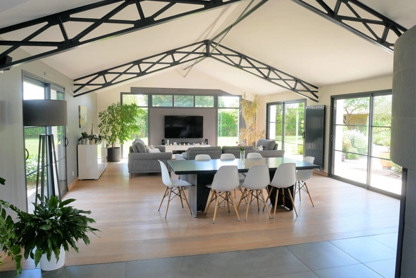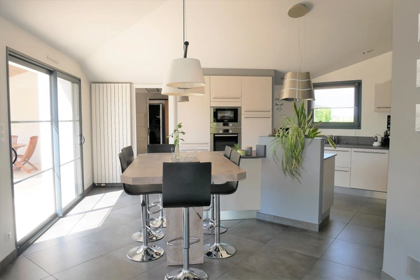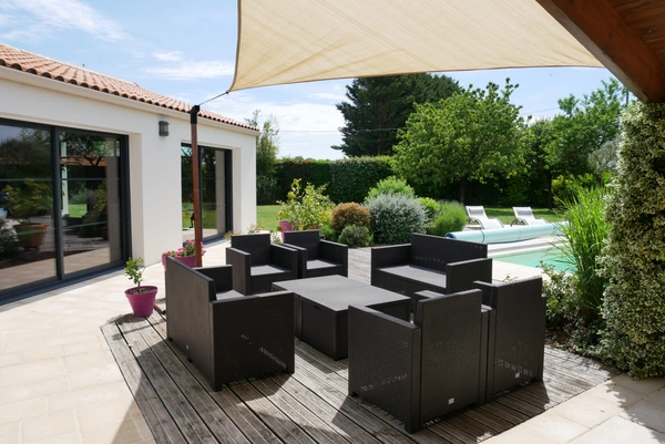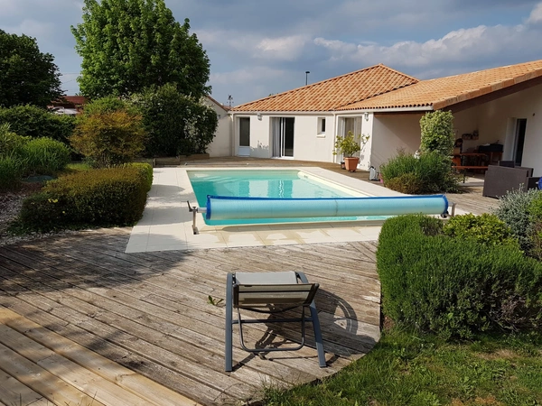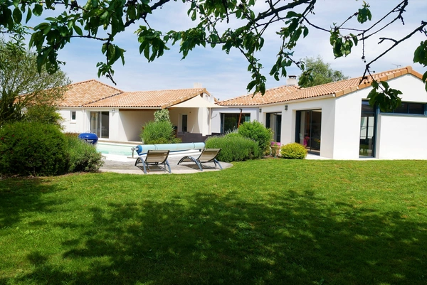 Vous allez tomber sous le charme de cette GRANDE MAISON de PLAIN-PIED au look CONTEMPORAIN très soigné. Elle vous offre 210 m2 habitables articulés autour d'une grande terrasse bois et d'une belle piscine. L'entrée dessert une magnifique pièce de vie ouverte sur une cuisine A/E, une 1ère aile est composée de 3 chambres, salle d'eau, bureau, WC; une 2nde aile est partagée par une chambre avec salle d'eau, un grand bureau et un WC. Double garage frontal, cellier et cave viennent compléter le tout qui est édifié sur grande parcelle de 1800m2 arborée avec puits alimentant toute la maison. A 7km de Cholet au sein d'une commune très dynamique. Plus de photos sur mon site. Bien proposé par Votre conseiller NOOVIMO Anne-Marie BREMAUD 06 58 54 41 03 abremaud@noovimo.fr Honoraires : 3,5% TTC de 410 000 EUR ( prix de vente honoraires exclus): Soit 424 350 EUR honoraires inclus. Honoraires à la charge de l'acquéreur. Nos honoraires sont consultables sur : www.noovimo.fr. 1 - Annonce rédigée et publiée par un Agent Mandataire -