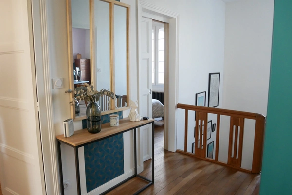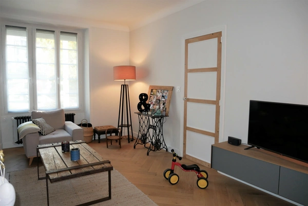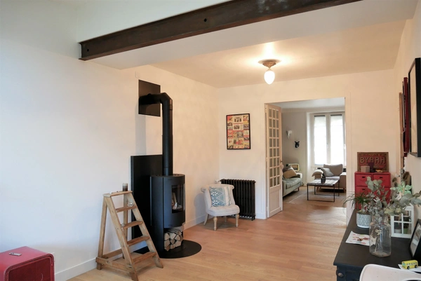 Vous allez adorer cette charmante maison de ville qui a bénéficié d'une complète rénovation. Dès l'entrée, elle vous propose un salon TV, un espace cocooning avec pöele à bois, un grand séjour attenant à une cuisine équipée, une buanderie et un WC. Le palier de l'étage dessert une suite parentale avec salle d'eau et dressing, trois très grandes chambres sur parquet massif et une salle de bain, WC. Garage avec portail motorisé et joli jardin clos. COUP DE COEUR ASSURE pour ce bien soigné idéalement situé.