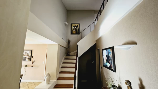 Rénové par un architecte d'intérieur dans un esprit de bon ton, lumineux, bien distribué, non mitoyen, ce pavillon ne vous laissera pas indifférent. L'entrée s'ouvre sur un un grand séjour-salon avec cheminée bois, une superbe cuisine aménagée et équipée contigüe à un cellier et une grande lingerie/bureau, WC; L'espace nuit du RDC est composé de deux chambres, double dressing, salle de bains avec WC. L'étage s'ouvre sur une mezzanine/bureau, une belle chambre, une salle d'eau et un WC; Vous bénéficierez d'un grand garage de 28m2 et d'une cave . Le tout est édifié sur une jolie parcelle arborée à l'abri des regards. Bien proposé par Votre conseillère Anne-Marie BREMAUD 06 58 54 41 03 abremaud@noovimo.fr. Honoraires 3,5% de 335 000EUR (prix de vente honoraires exclus) Soit 346 725 EUR honoraires inclus. Honoraires à la charge de l'acquéreur. Nos honoraires sont consultables sur : www.noovimo.fr 'Les informations sur les risques auxquels ce bien est exposé sont disponibles sur le site Géorisques : http://www.georisques.gouv.fr'. Ref : ABD Votre agent commercial Noovimo inscrit au RSAC de ANGERS sous le no521 308 270 - Annonce rédigée et publiée par un Agent Mandataire -