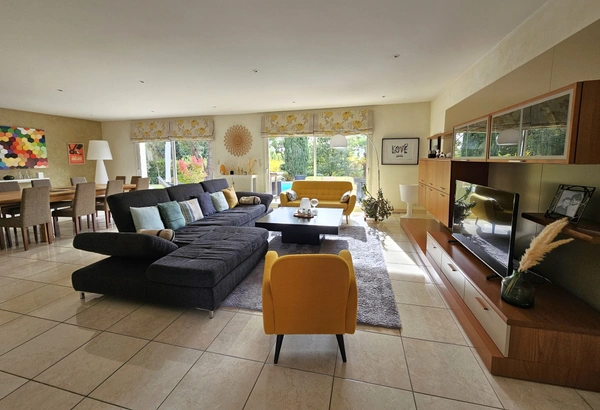 Dès l'entrée, vous allez tomber sous le charme de la vue magique dont bénéficie cette propriété. La grande pièce de vie, la récente cuisine accèdent à la terrasse qui offre plusieurs espaces autour de la piscine. Ce rez de chaussée est complété par un bureau et une suite parentale s'ouvrant également sur le jardin. L'étage est composé de quatre chambres, trois pièces d'eau et une grande salle de jeux. Une buanderie et un double garage de 50m2 complètent l'ensemble. Voici donc une vraie maison familiale où il fait bon vivre au gré des couleurs du paysage.