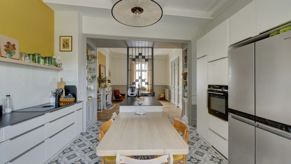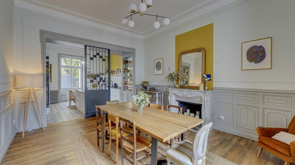 Cette superbe bâtisse de la fin du XIX ème siècle, offre 300m2 de charme et d'élégance. Une rénovation de qualité réalisée en 2020 en font un bien d'exception adapté à une famille nombreuse dont chaque membre trouvera son aise. L'entrée sur parquet donne le ton avec un agencement efficace. Elle distribue un salon, une salle à manger avec cheminée ouverte sur une magnifique cuisine avec accès direct au jardin, un vestiaire/buanderie et un WC. Le premier étage accueille une suite parentale et deux autres chambres avec salle d'eau. Le second palier est composé de quatre chambres et d'une salle d'eau. Une belle cave et un grenier complètent l'ensemble. Vous profiterez d'un jardin avec grande terrasse carrelée et espace paysagé avec piscine chauffée. Vous considérerez comme un luxe, le garage indépendant pouvant accueillir voiture et deux roues. Belle découverte pour cette propriété en centre-ville, RARE et particulièrement STYLEE. Bien proposé en EXCLUSIVITE par Votre conseillère Anne-Marie BREMAUD 06 58 54 41 03 abremaud@noovimo.fr. Honoraires 3% de 700 000EUR (prix de vente honoraires exclus) Soit 721 000EUR honoraires inclus. Honoraires à la charge de l'acquéreur. Nos honoraires sont consultables sur : www.noovimo.fr 'Les informations sur les risques auxquels ce bien est exposé sont disponibles sur le site Géorisques : http://www.georisques.gouv.fr'. Ref : ABD Votre agent commercial Noovimo inscrit au RSAC de ANGERS sous le no521 308 270 1 - Annonce rédigée et publiée par un Agent Mandataire -