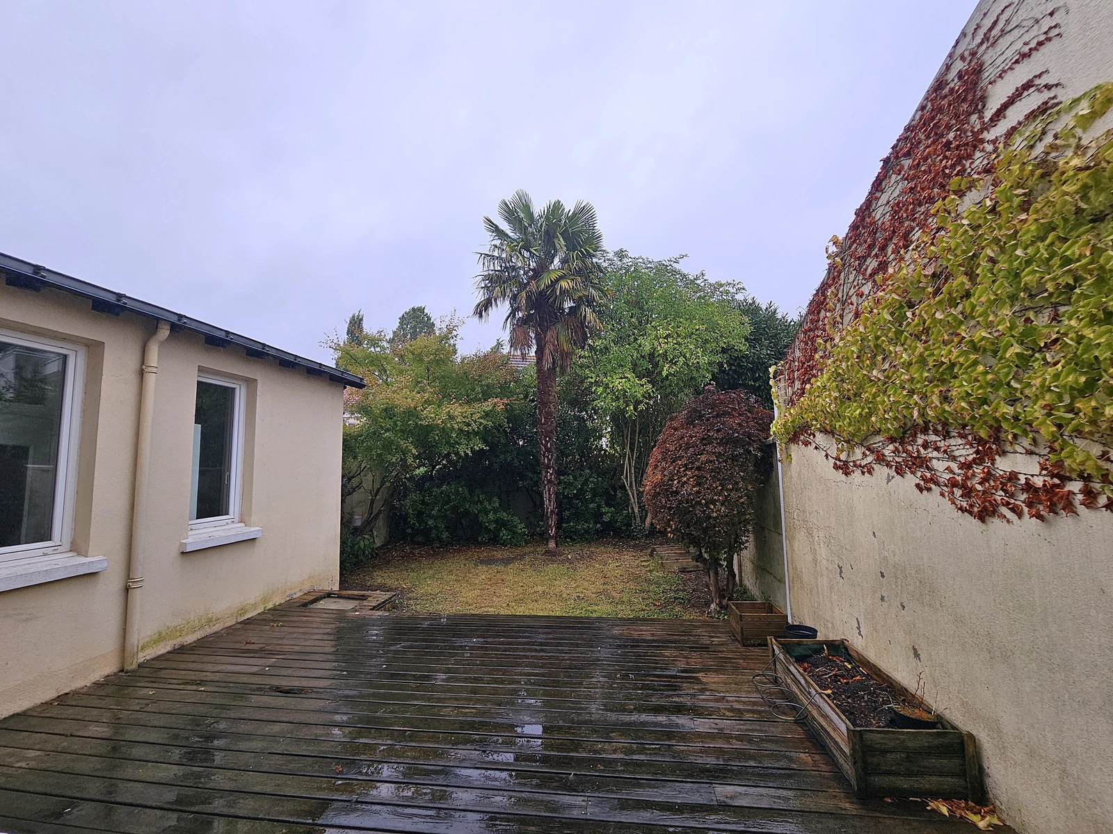 Emplacement de choix pour cette maison offrant une très belle base. L'entrée assez vaste peut accueillir un grand bureau, l'étage propose une double séjour ouvert sur une cuisine A/E, une chambre, une salle d'eau, une buanderie et un WC. Ce niveau ayant accès direct au jardin avec terrasse. Le second étage est occupé par trois chambres mansardées et une salle d'eau. Un garage complète le tout.